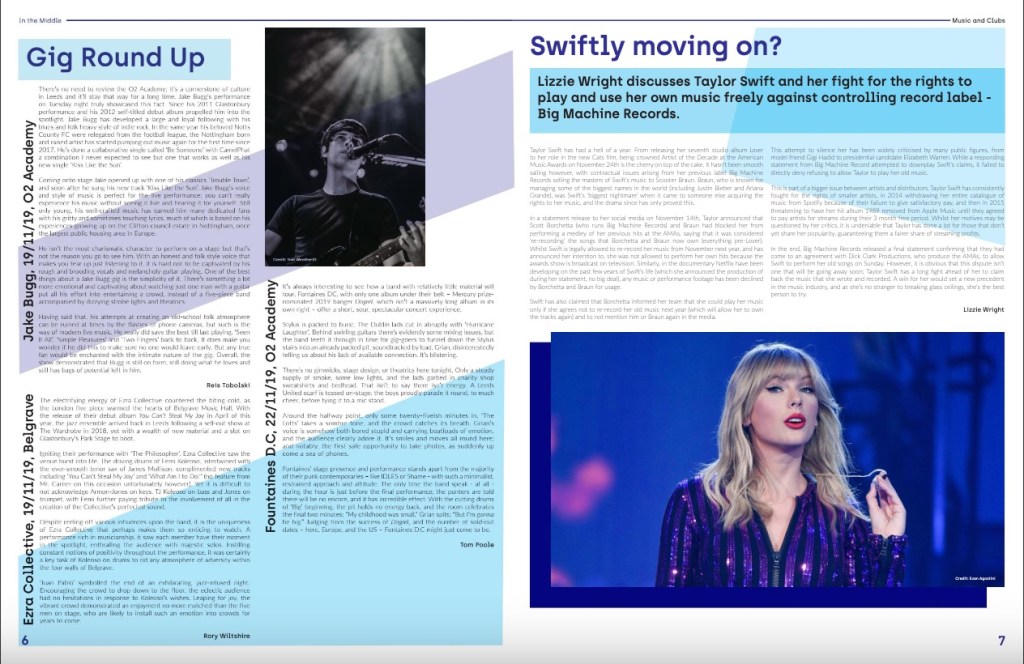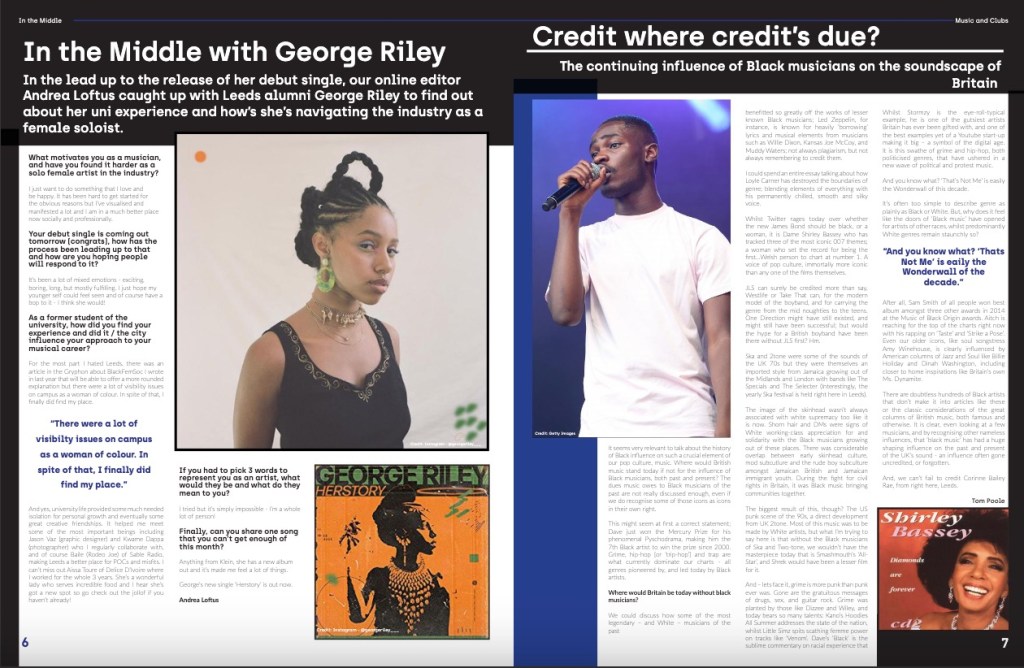 I am fluent with the suite of Adobe software, using primarily InDesign and Photoshop to design a year’s worth of print editions of the Gryphon Newspaper’s music section.